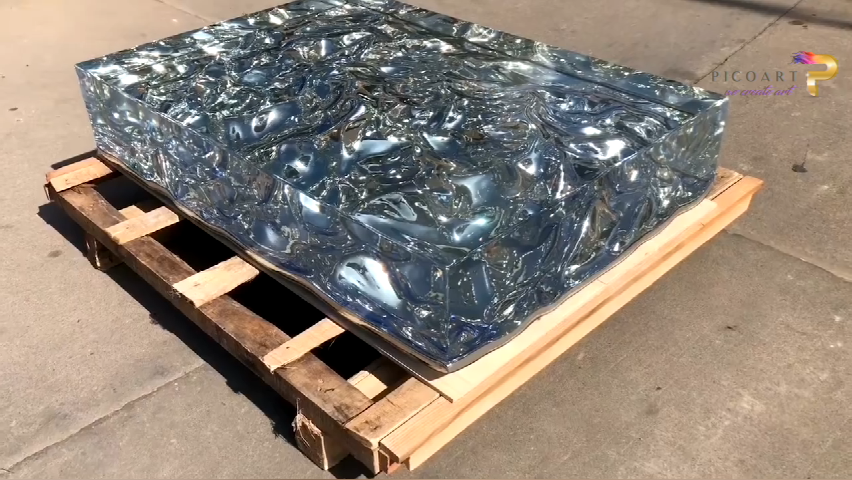 Uper part is clear resin cube and stainless steel plate on the bottom, the wave is forged by our expreiced master time by time.